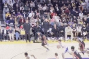 场边老詹瞬间起立鼓掌!布朗尼接里夫斯传球 生涯首次空接暴扣!