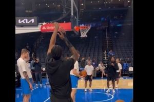 篮球NBA雷霆 体育资讯10月10日讯 记者Tim MacMahon报道,杰伦-威廉姆斯在夏天接受手腕手术后,目前还没有开始用右手投跳投。同时,球队对他的复出时间表守口如瓶。主帅戴格诺特谈到他的恢复表示:“他的恢复进展在正常时间线上,他正处在该有的位置。”