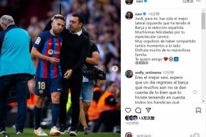 足球西甲巴塞罗那迈阿密国际 体育资讯10月8日讯 阿尔巴将在本赛季结束后退役,哈维社媒发文祝福。哈维晒出与阿尔巴的合照,配文:“约迪,在我心中,你始终是巴萨和西班牙国家队历史上最出色的左后卫。”“衷心祝贺你缔造了如此辉煌的职业生涯,能与你共度这么多美好时光,我深感自豪。愿你尽情享受美满的家庭时光。爱你,我的朋友。”